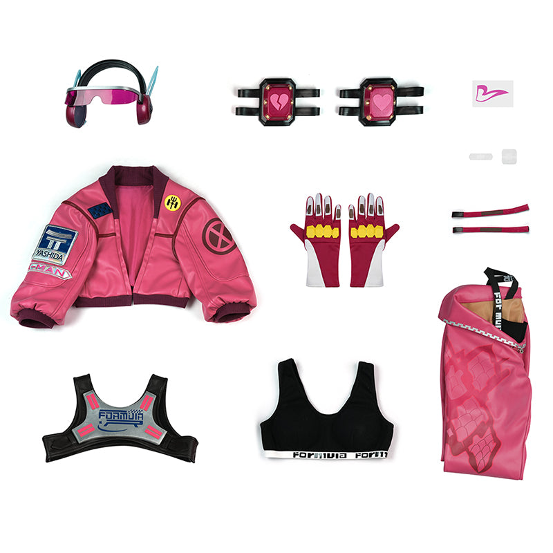 - Including:Top, vest, stickers, chest plate, gloves, wristbands, pants, knee pads, temporary tattoos, shoes, glasses and headphones prop set