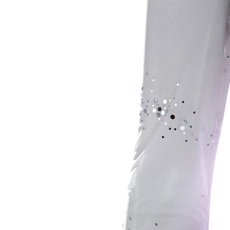 - Material: Satin-finish sardine fabric. Beaded sequins. Powder-coated tulle. 20D polyester-spandex blend with sequins. Double-layered lining fabric. 60-count dense weave composite with 60-count dense weave and small round discs.