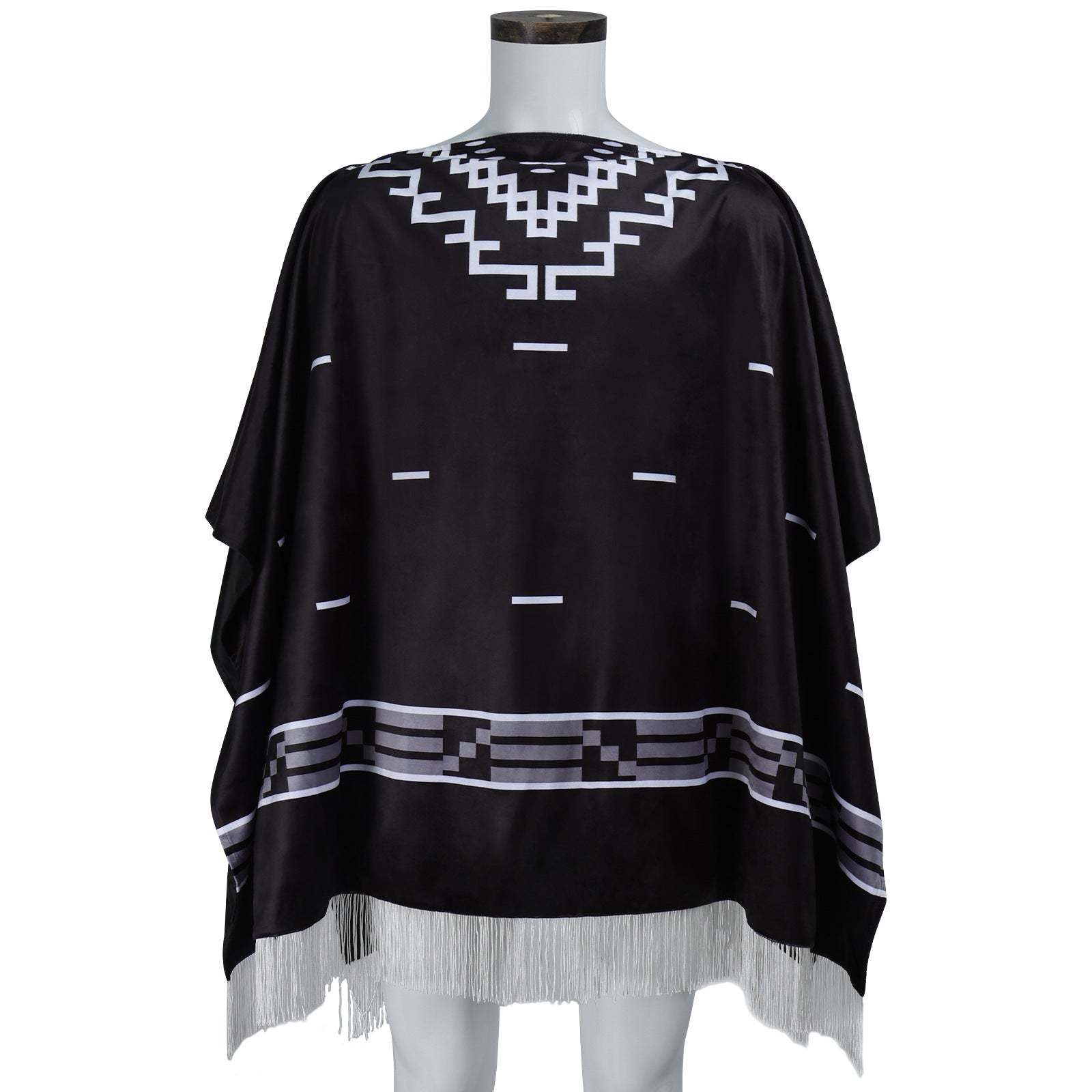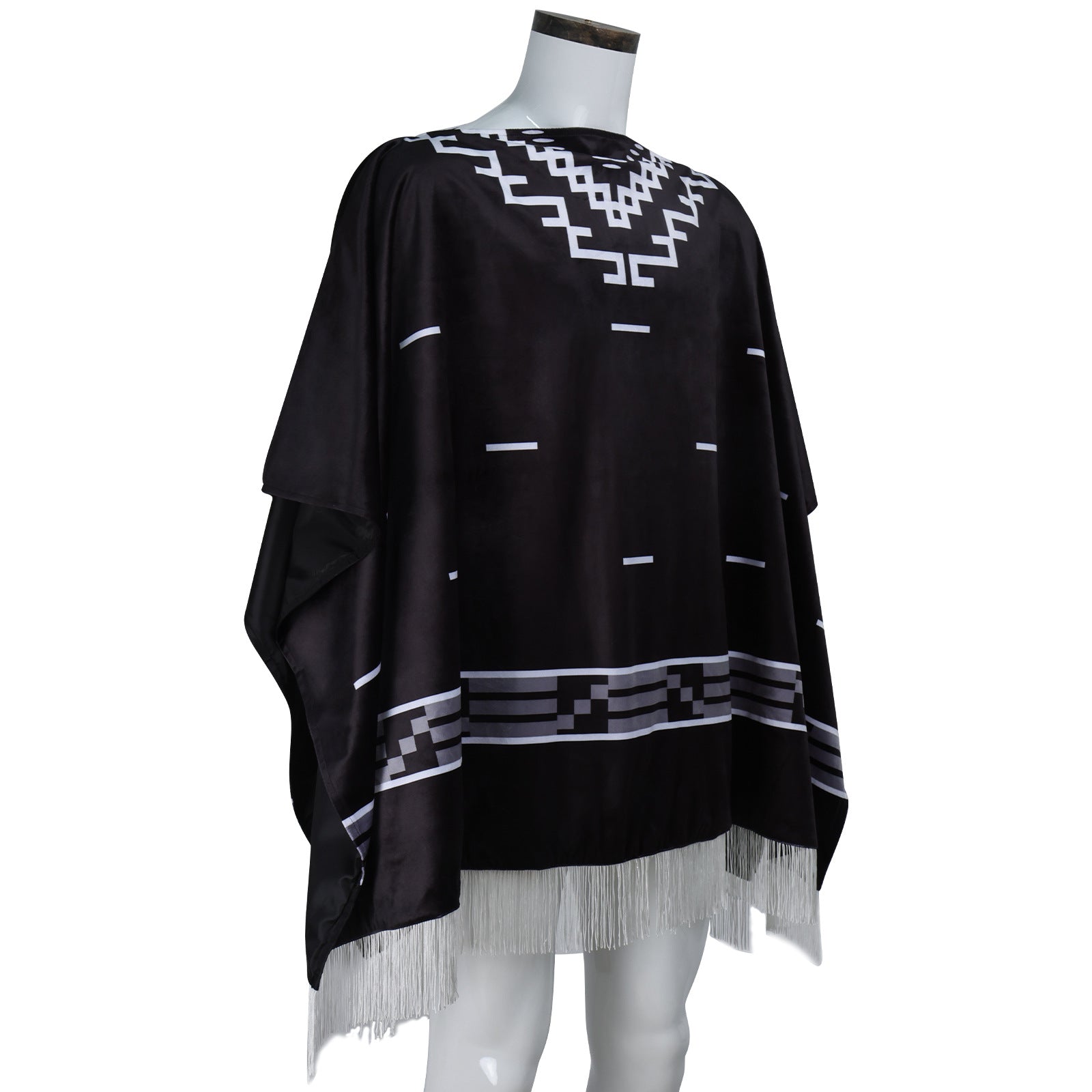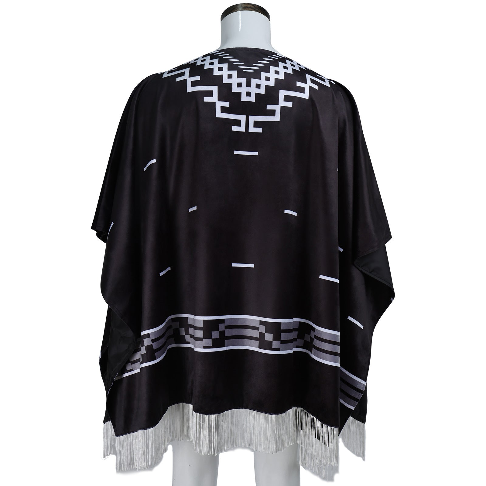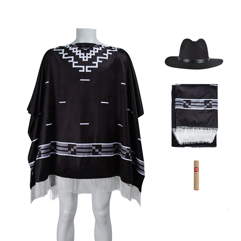 - Channel the legendary "A Fistful of Dollars" vibe with this bold black-and-white geometric-patterned cape—perfect for cosplay, themed events, or adding a rugged, retro edge to your look.